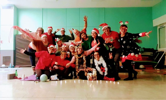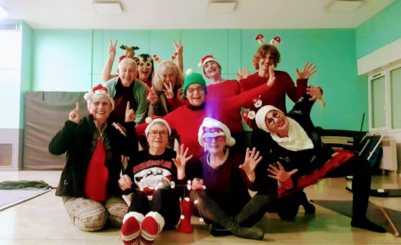 Une fois de plus tous les adhérents étaient heureux de travailler leurs transverses avec leur bonnet rouge, blanc ou vert. Avant ou après le cours, nous avons partagé quelques papillottes et passé un bon moment tous ensemble. Cette ambiance si particulière est portée en autre par Sandrine, notre coach qui n'a pas oublié de nous donné quelques devoirs de vacances !!